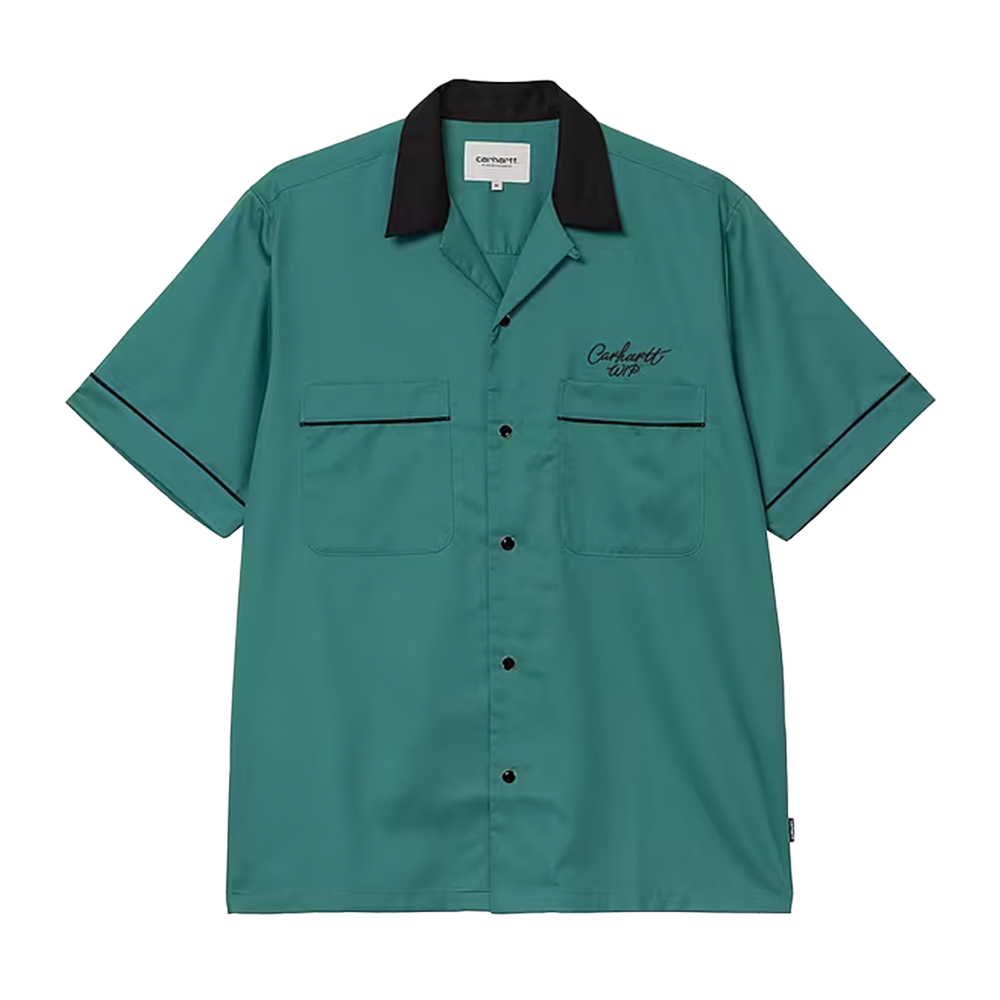 La S/S Bowl T-Shirt è realizzata in leggero lyocell e twill di cotone ed è caratterizzata da vestibilità ampia. La camicia presenta colletto hawaiano con elementi a contrasto e bordura a contrasto in corrispondenza di tasche sul petto, maniche e sprone posteriore. Sul petto campeggia un ricamo grafico. Rifinisce il modello un’etichetta bandierina in tessuto.