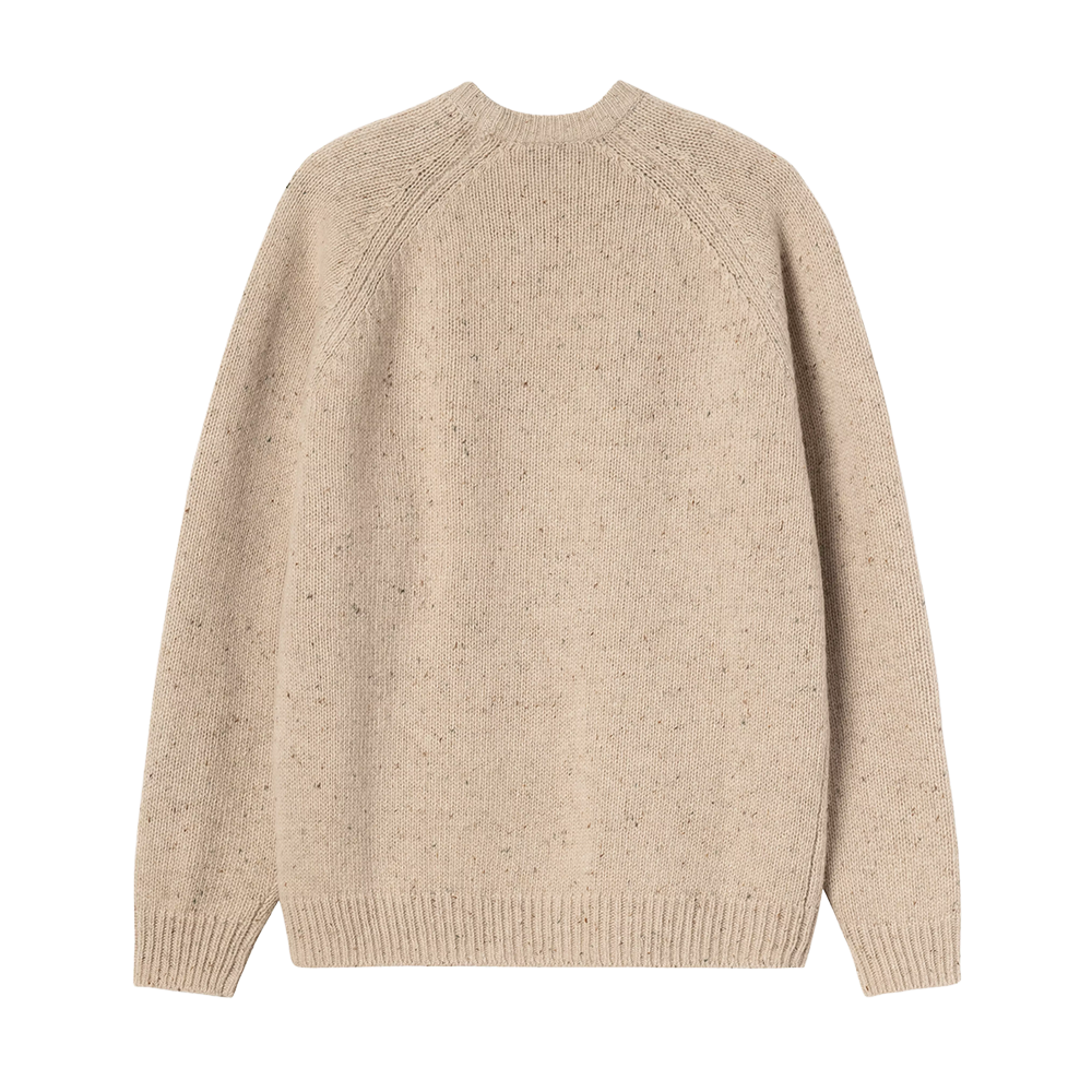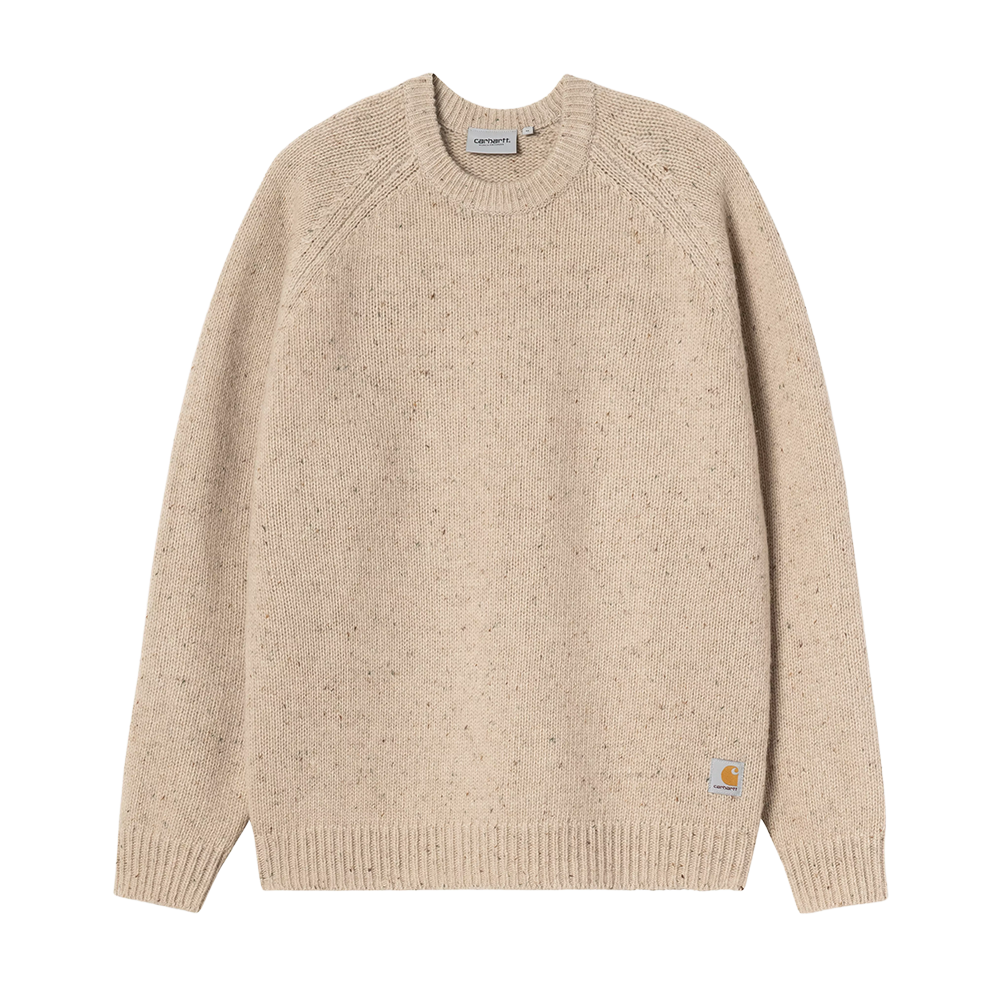 L’Anglistic Sweater è realizzato in un caldo misto di lana di agnello, cotone e acrilico, è caratterizzato da vestibilità normale e presenta maniche raglan. La maglia è inoltre caratterizzata da un aspetto vagamente puntinato ed è impreziosita da un’etichetta quadrata in tessuto in corrispondenza dell’orlo.