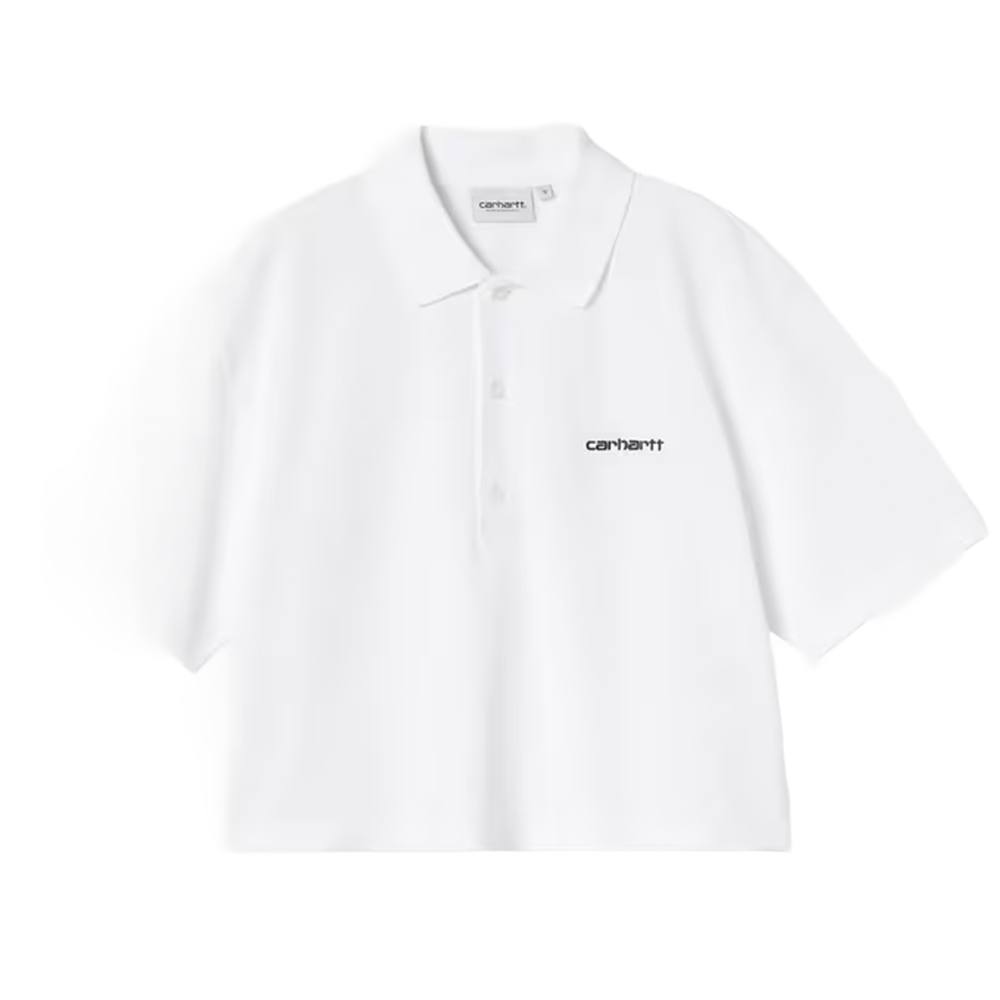 La Women’s S/S Carhartt Script Polo T-Shirt è realizzata in piquet di medio peso e caratterizzata da vestibilità ampia di taglio corto. Sul petto campeggia un ricamo del logo.