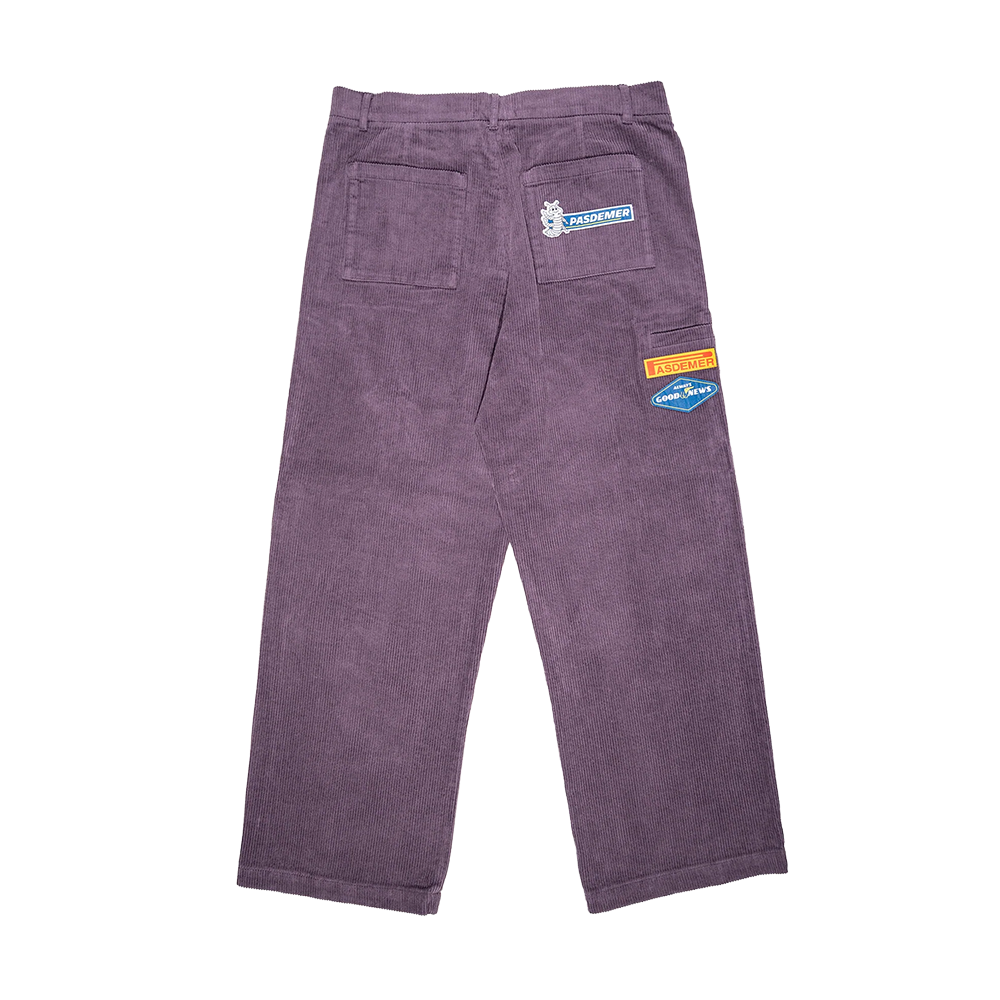 I dettagli includono toppe sul retro, occhielli metallici sul davanti e una delicata colorazione viola chiaro.