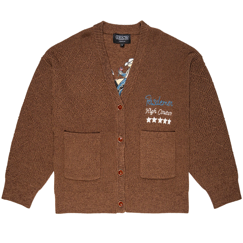 Cardigan marrone realizzato in un morbido e caldo mix di acrilico, nylon, lana e alpaca.