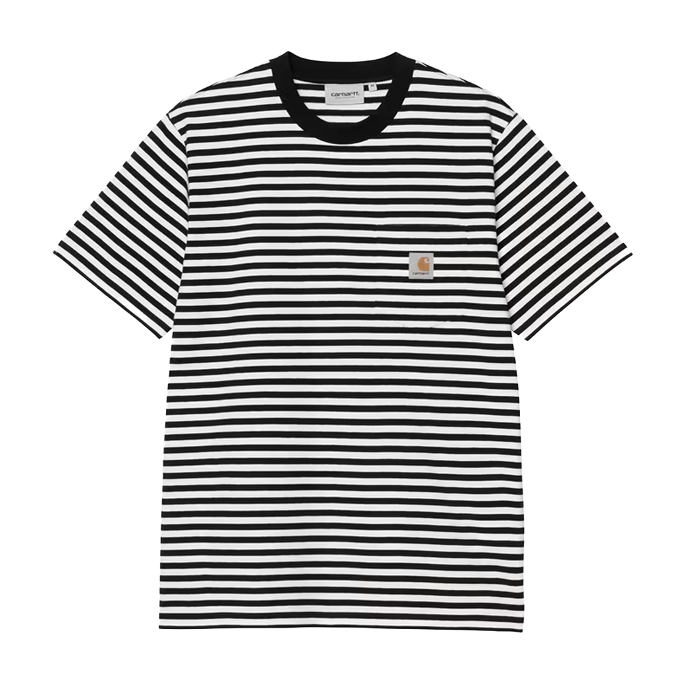 La S/S Ezra Pocket T-Shirt è caratterizzata da vestibilità normale e realizzata in jersey di cotone di medio peso con righe allover. Presenta una tasca sul petto impreziosita da un’etichetta quadrata in tessuto.