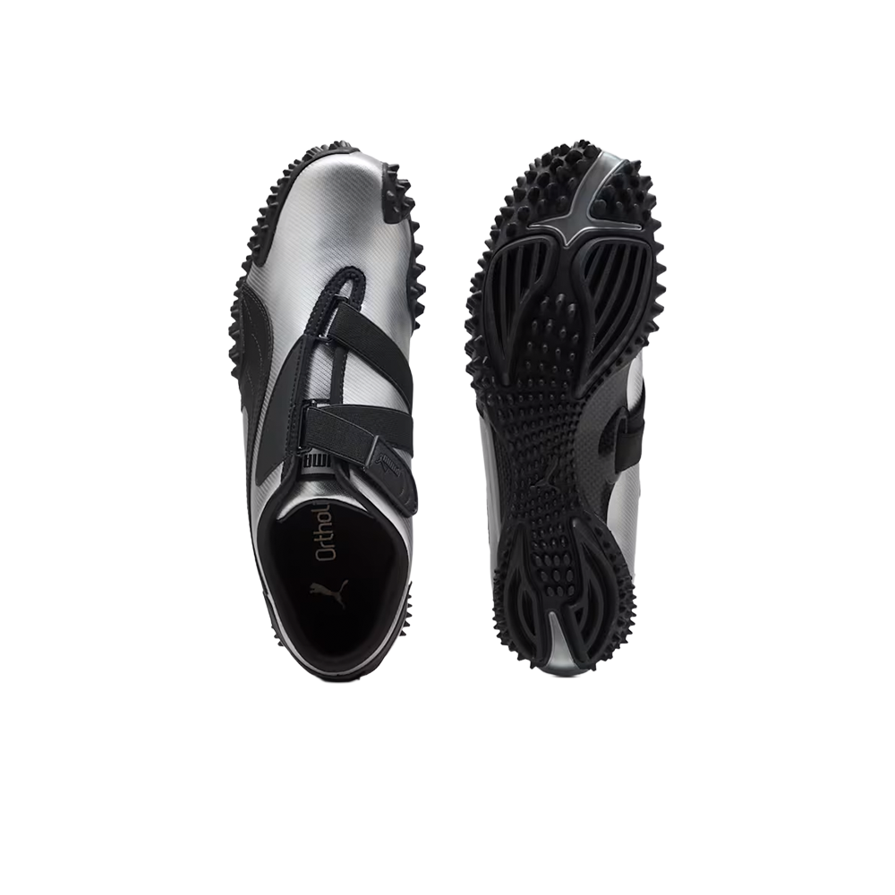 Mostro non è una scarpa per tutti. Da oltre vent'anni è indossata da chi sfida le convenzioni e rifugge la norma. Prendendo il nome dalla parola italiana per "mostro", Mostro è una creazione ibrida che attinge da due mondi diversi: le eleganti scarpe chiodate da corsa degli anni '60 e le scarpe da surf degli anni '80. Ancora oggi continua ad affascinare con il suo design distintivo e scultoreo, la forma a basso profilo e la suola chiodata all'avanguardia.