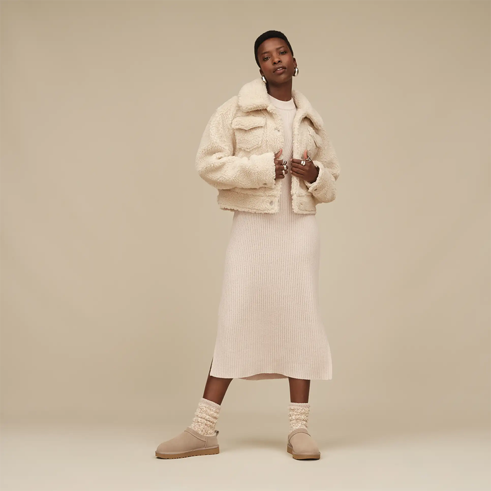 • Etichetta in tessuto con logo UGG® sulla soletta, etichetta in pelle con logo UGG® in rilievo sul tallone