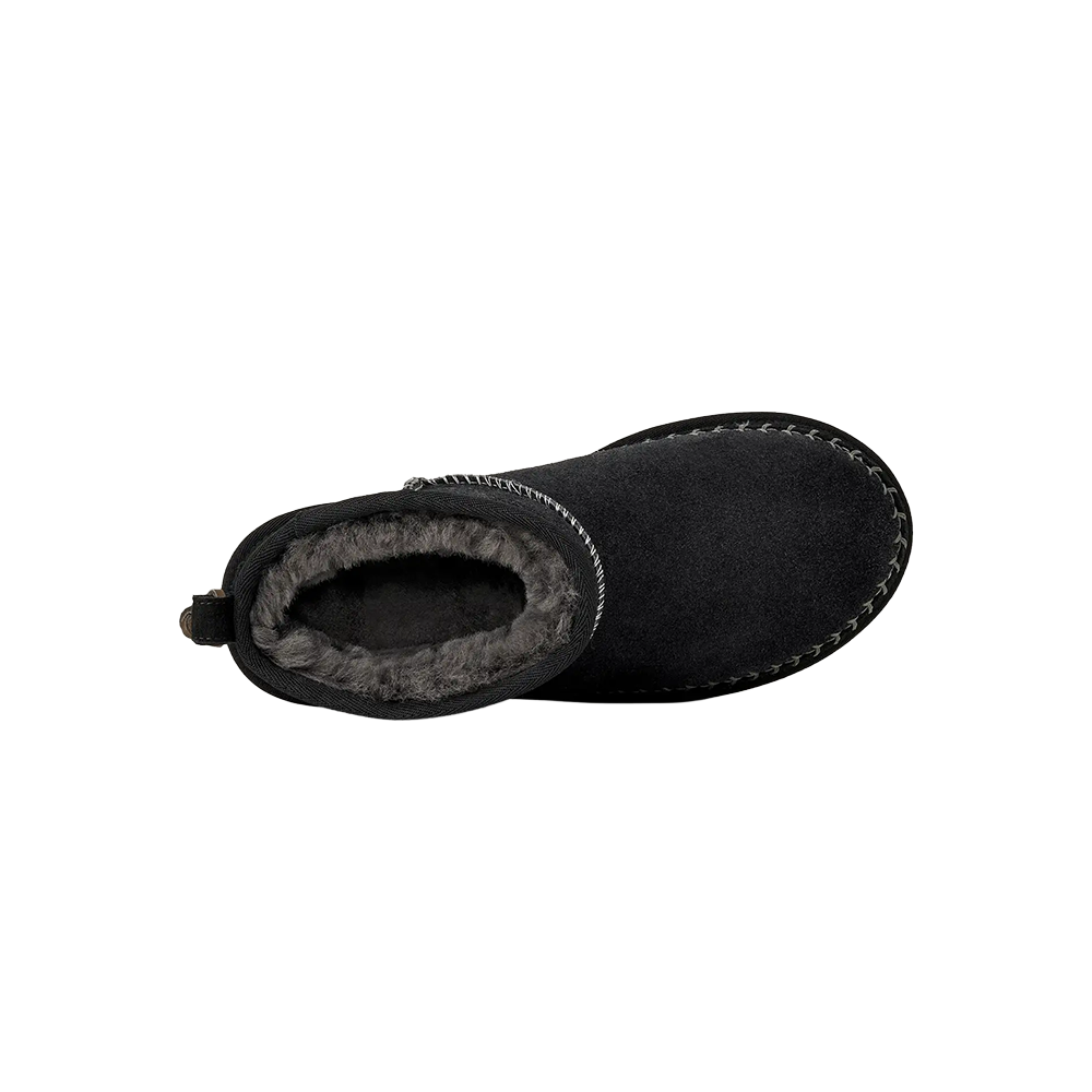 Classic Ultra Mini Biarritz sono un’edizione speciale degli amati Classic Ultra Mini, che ti farà venire voglia di falò in spiaggia e passeggiate rilassanti in città. Realizzati con una tomaia in morbido camoscio testurizzato, presentano elementi iconici come le cuciture e il fiocco posteriore in pelle. La morbida fodera in vero montone offre la sensazione che solo UGG® sa dare. La suola leggera in EVA da canna da zucchero ti darà l’impressione di indossare una ciabatta, in casa e fuori.