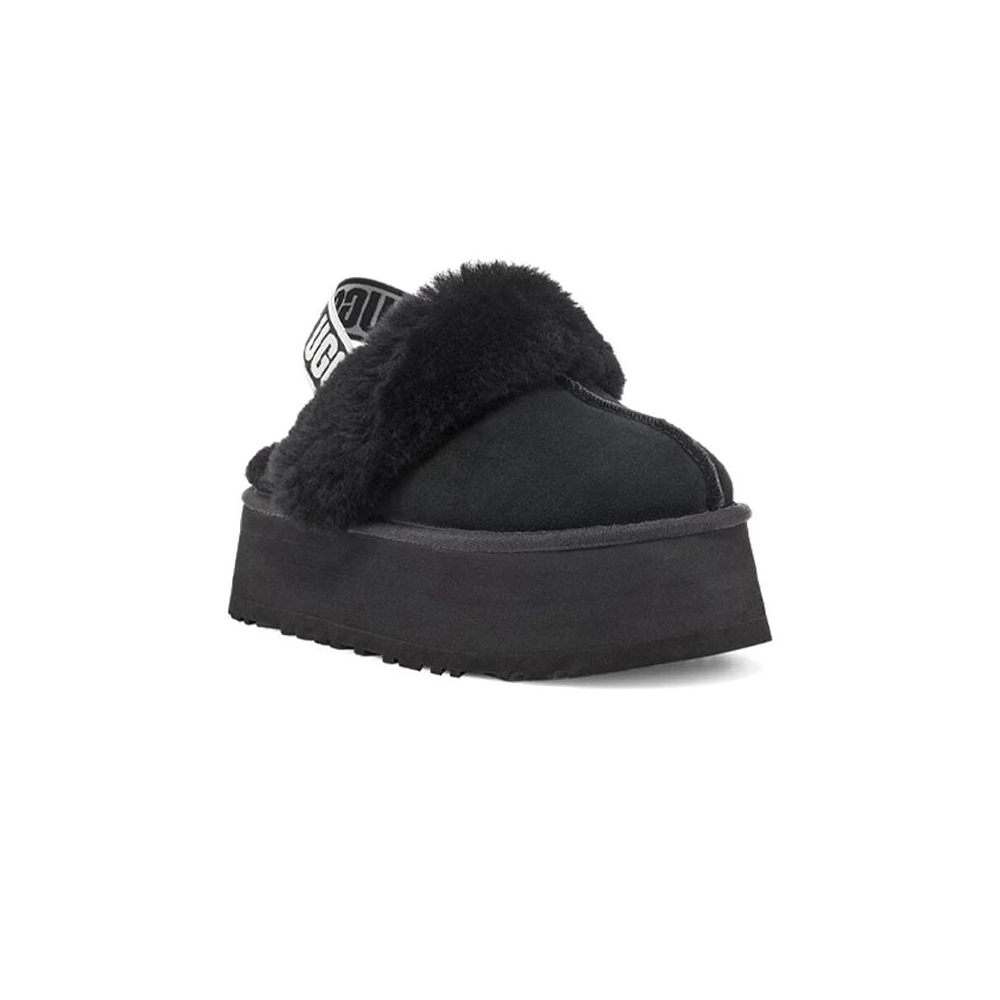 Sabot Ugg Funkette donna, è un'evoluzione dell'iconica ciabatta Coquette e ne aggiorna il design con un plateau a strati, per uno stile rétro vistoso e originale. Con una silhouette slip on e una fodera in soffice montone analoghe all'originale, mantiene il piede in posizione grazie al cinturino posteriore con logo grafico UGG. Abbinala a jeans scuri e un top a righe. Tomaia in camoscio. Collarino in montone. Cinturino elastico con grafica UGG®. Fodera in montone (10 mm). Soletta in montone (10 mm). Suola in EVA. Cuciture in poliestere. Tacco: 5,08 cm. Etichetta in tessuto con logo UGG® sulla soletta. Colore nero/bianco. 62% Pelle - 38% Eva. Calzata regolare.