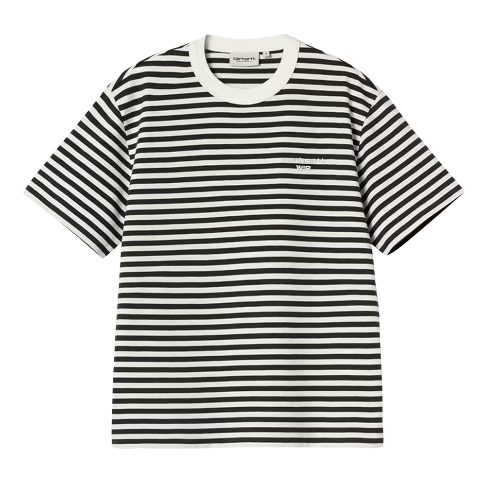 La Women’s S/S Ezra T-Shirt è realizzata in jersey di cotone di medio peso a righe ed è caratterizzata da vestibilità ampia. Sul petto campeggia un ricamo grafico.